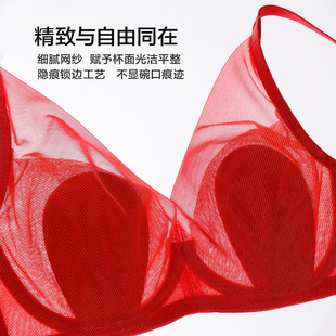 爱慕内衣女本命年红品薄衬垫透气隐孔花瓣大胸显小文胸AM139091