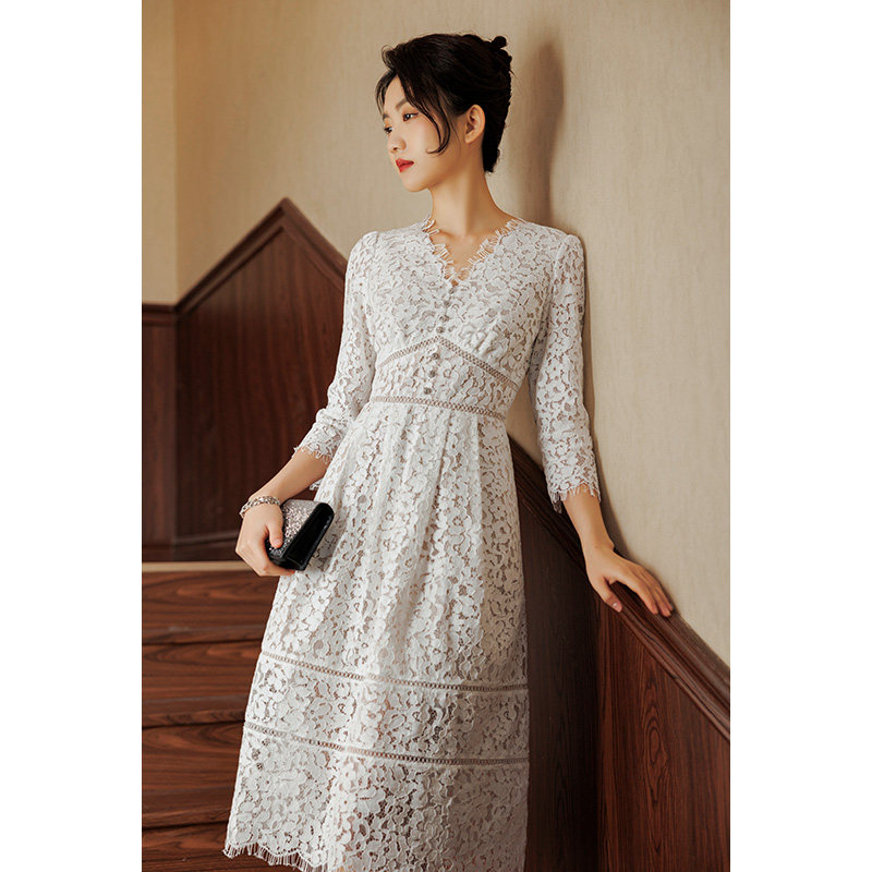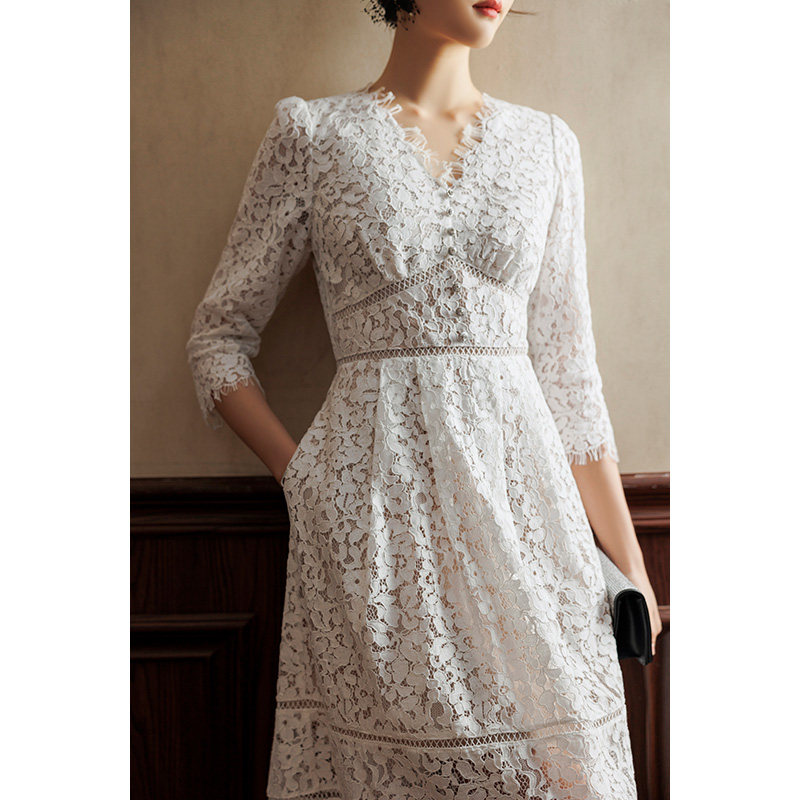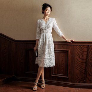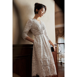 设计感收腰裙子 连衣裙微胖大码 安妮不火 塞纳白露庭镂空花小飞袖