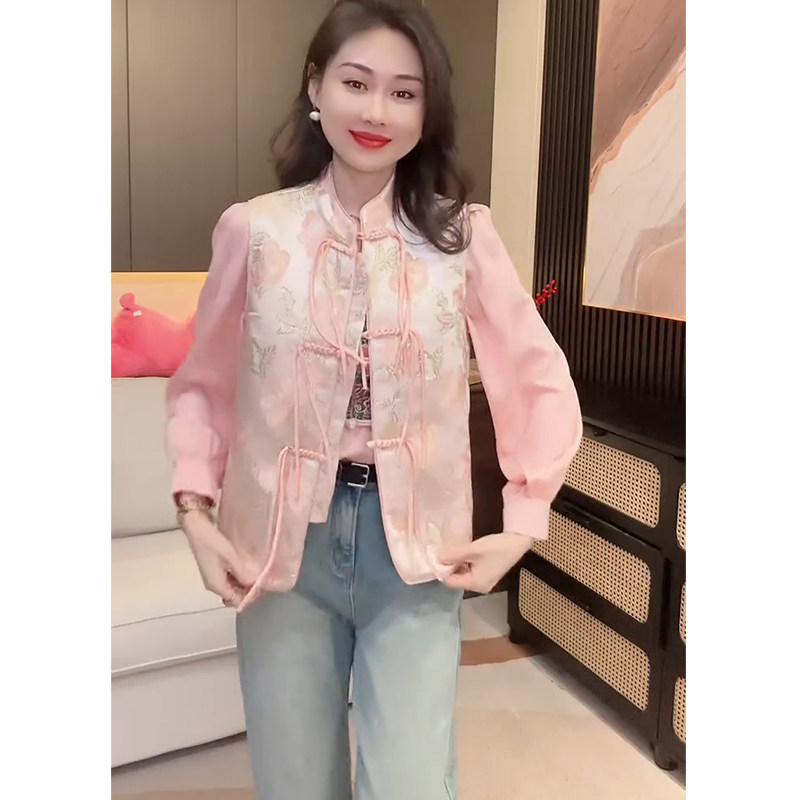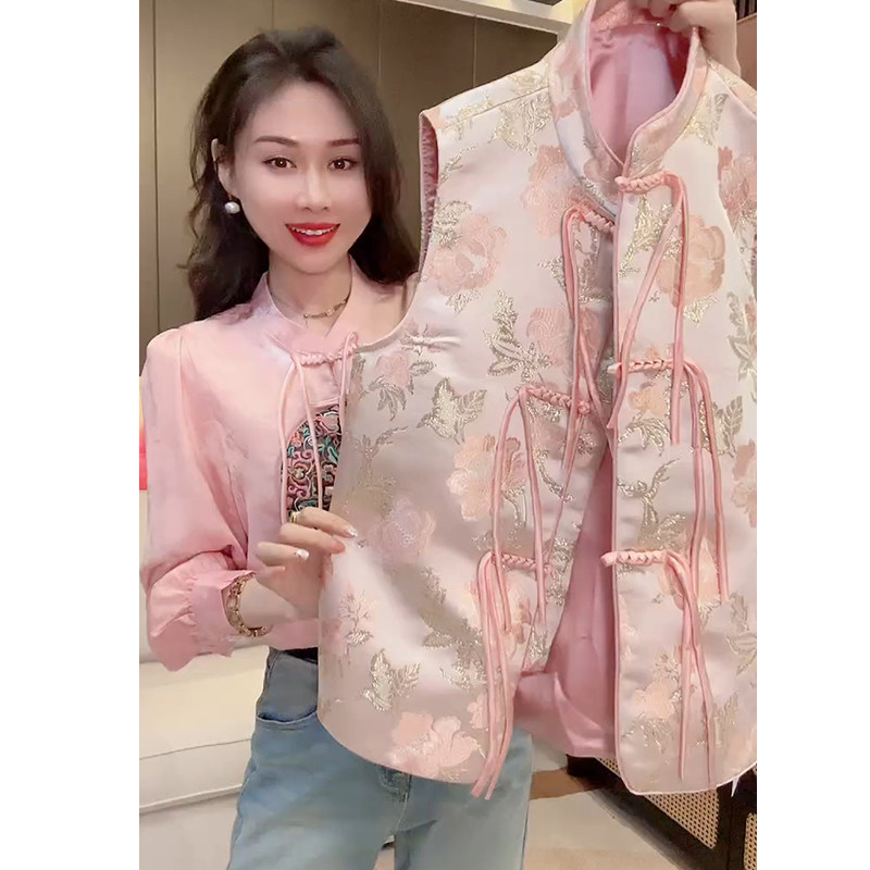 立领提花流苏无袖 新款 百搭上衣 国风盘扣马甲外套女2024春季 新中式
