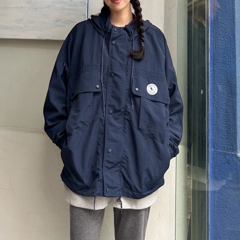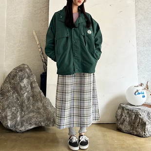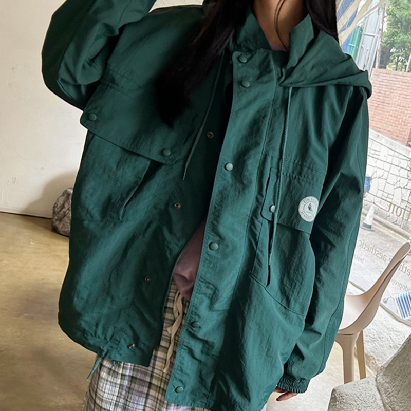 连帽中长风衣外套 防泼水秋冬长袖 F75韩国女装 日系学院工装