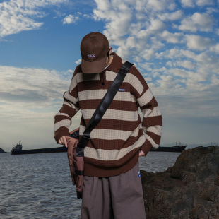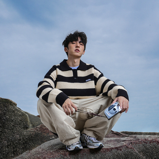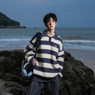 套头内搭加厚 polo衫 GOGOSOON条纹毛衣男800g新款 2025秋冬外套长袖