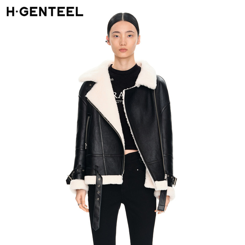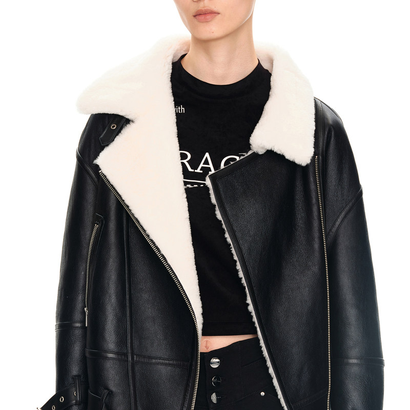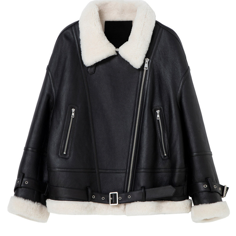aaaaxbbb 奶白色环保皮草短外套韩系保暖皮毛一体上衣 新西兰半岛