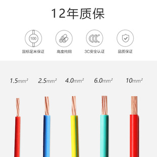 无氧铜电线ZC BVR 2.5 6多股软线 1.5 正泰阻燃电线国标足米家装