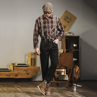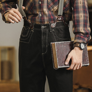 男生民国文艺风男装 春秋款 吊带裤 男士 子黑色休闲裤 英伦复古背带裤