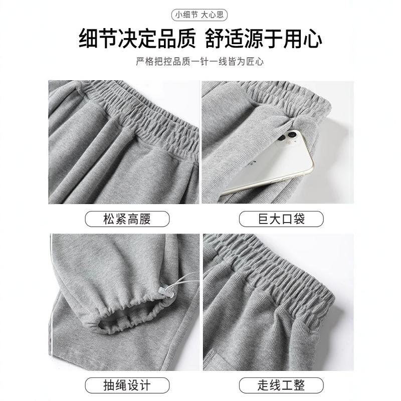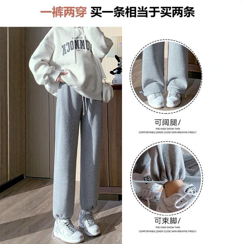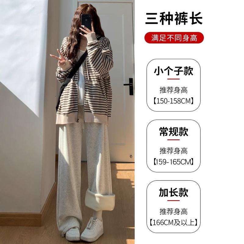 束脚休闲阔腿小个子卫裤 加绒棉裤 女秋冬2025新款 灰色羊羔绒运动裤