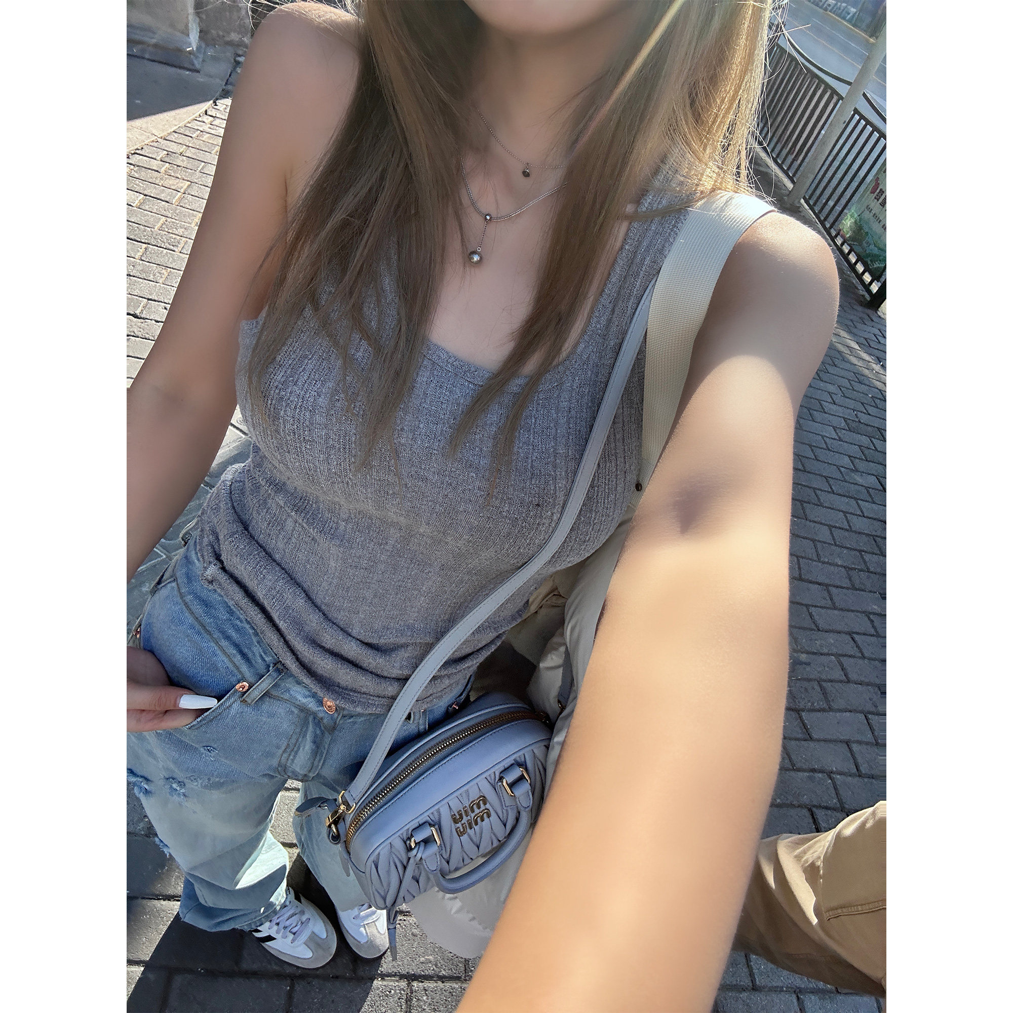 Xinlei 上黑金报刊极简感慵懒舒适三色背心女秋 Lin