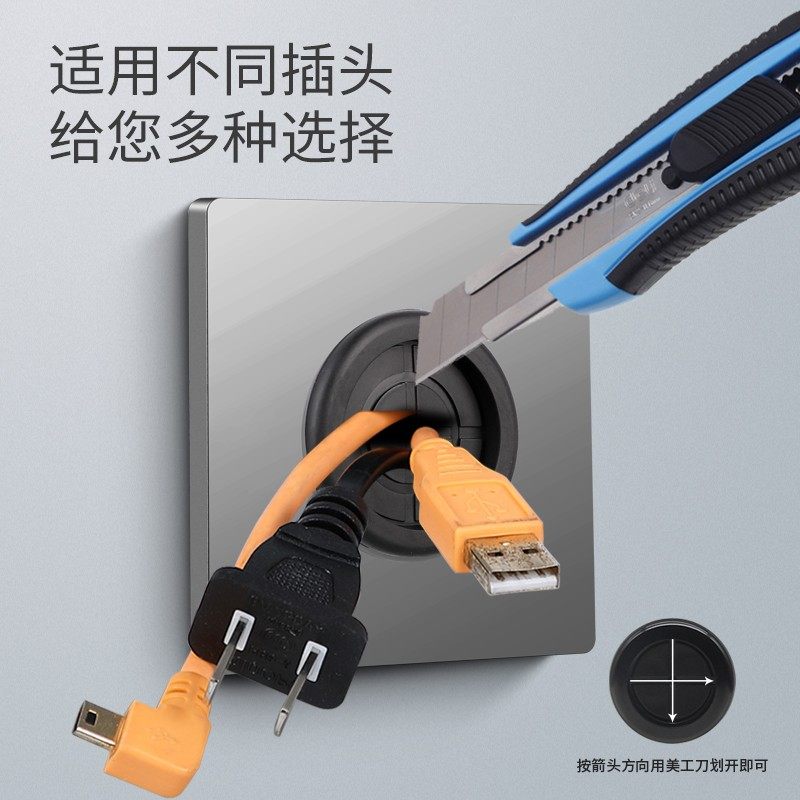 空白面板带出线孔开关插座86型家用墙壁装 饰白板电视网络穿孔面板