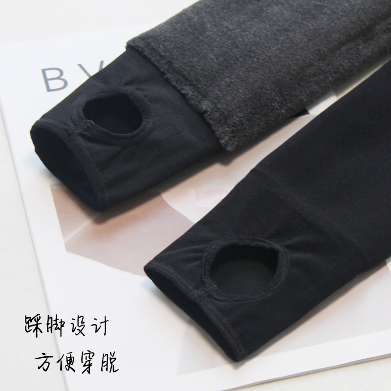 灰色绵羊毛保暖裤 菇娘家热压连裤 秋冬新款 女大码 袜 袜黑色打底裤