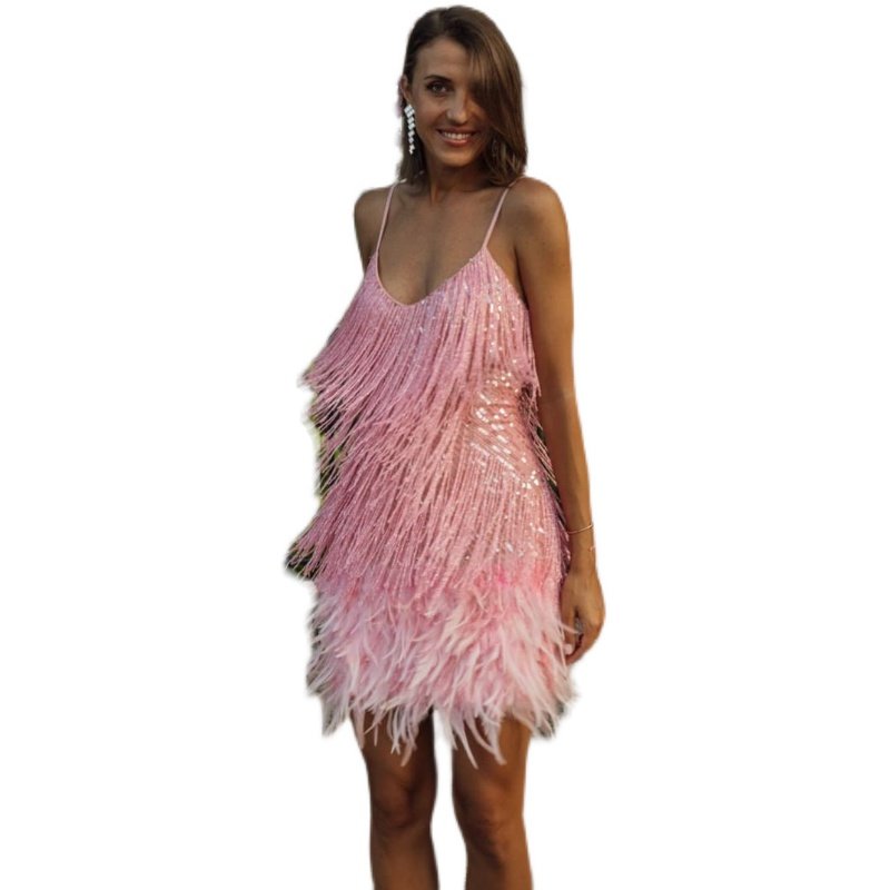 Panel 流苏亮片羽毛拼接连衣裙 Feather Sequined Dress Fringed