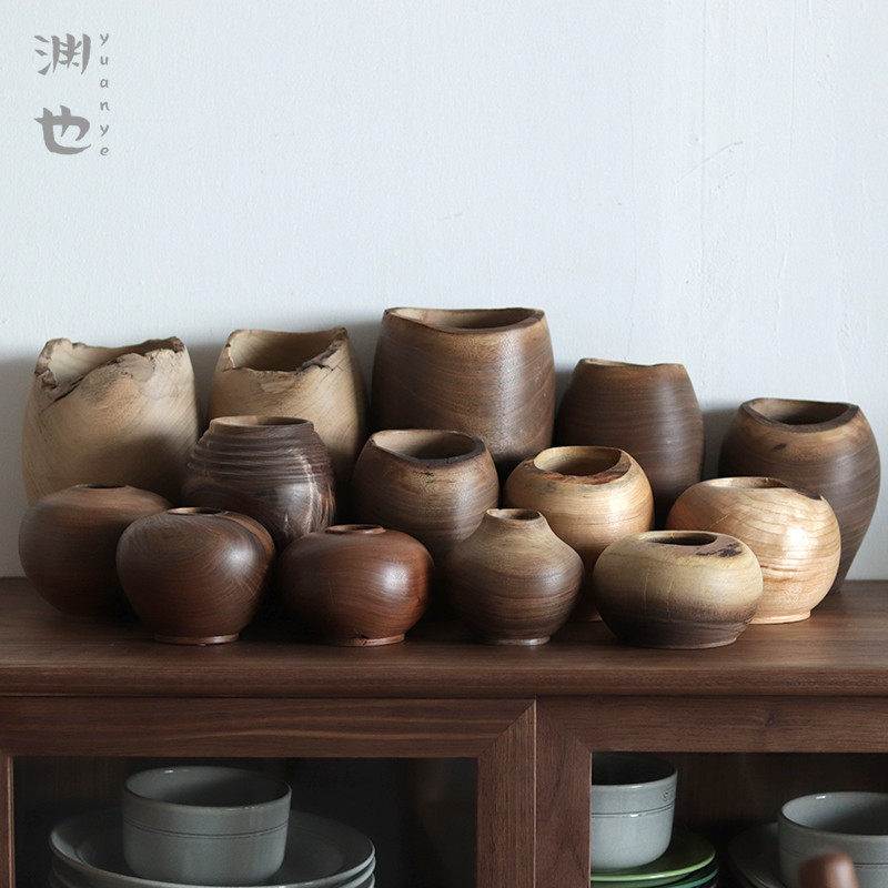 渊也原木手工实木罐工艺摆件木质收纳储物罐民宿客厅酒店装 饰木器