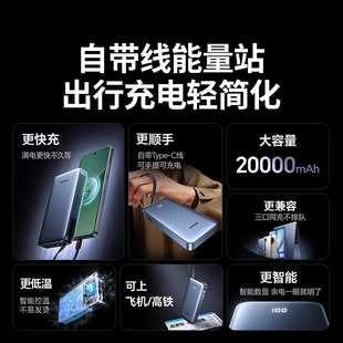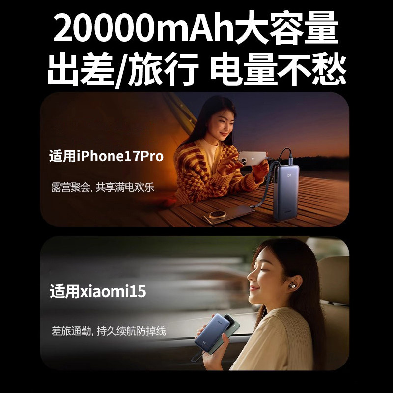 20000毫安大容量自带线快充移动电源适用小米苹果17专用官方旗舰正品 倍思2025新款 充电宝3c认证可上飞机