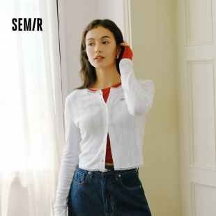 开衫 森马长袖 纯棉蕾丝花边修身 提花刺绣2025秋新款 温柔 T恤女短款