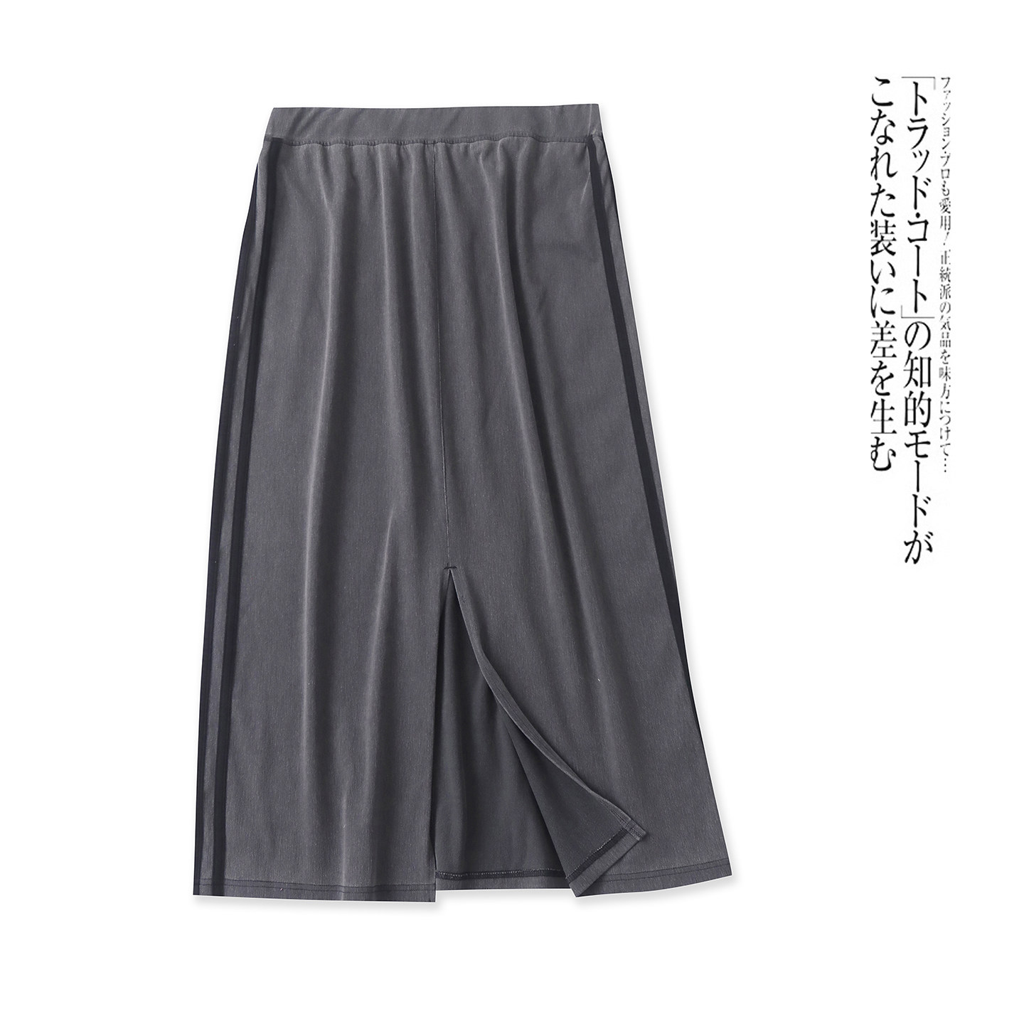 外贸女装 新款 松紧腰包臀开叉弹力中长裙31803 夏季 日单侧条半身裙