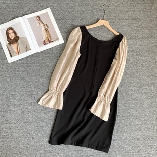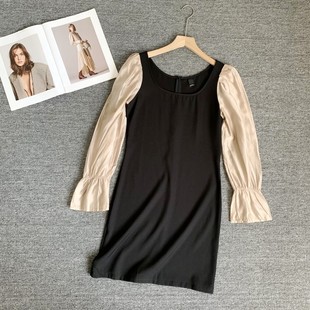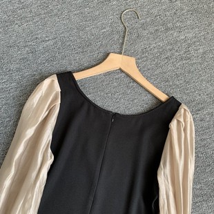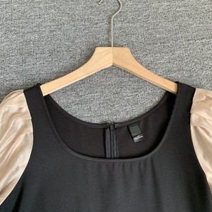 小个子法式 小码 黑色赫本风连衣裙女网纱拼接设计感裙子 S码 天丝袖