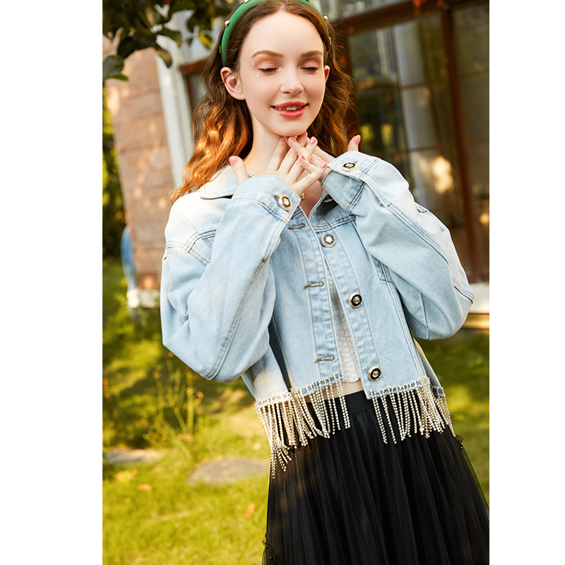 重工流苏高端牛仔外套女独特超好看 欧韩货小个子上衣2025秋新款