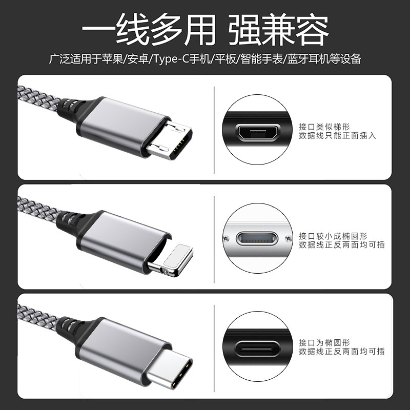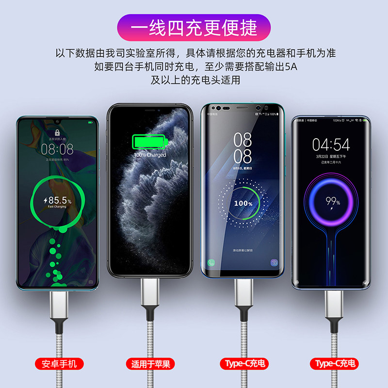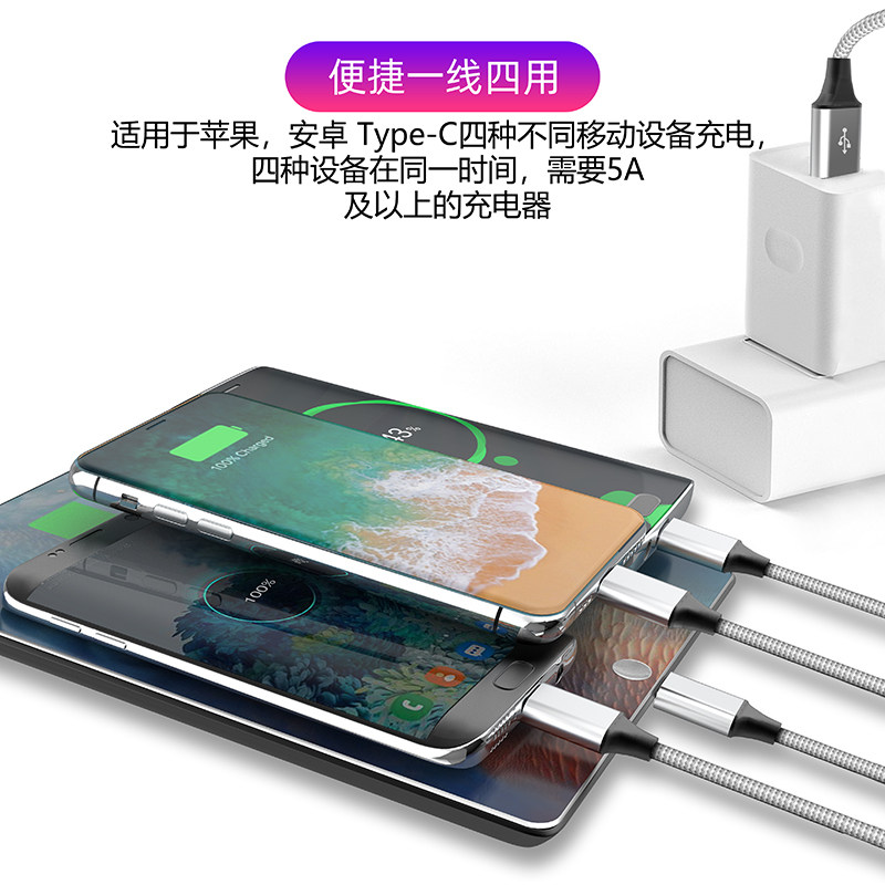 萨科雷手机一托四数据线适用苹果华为oppo小米vivo一加三星安卓手机四合一冲电器线快充车载typec充电线加长