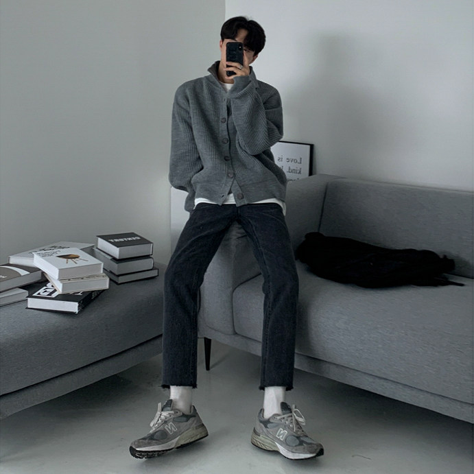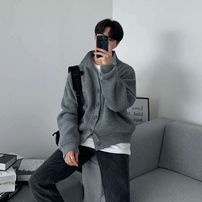 韩系宽松潮流高级感复古针织衫 春秋季 外套 毛衣男士 MRCYC立领开衫