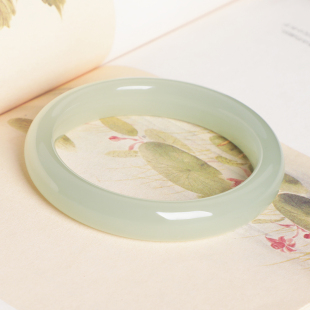 珪宝正品 玉镯天然玉石镯子 和田玉青白玉宽条手镯高冰晴水少女款