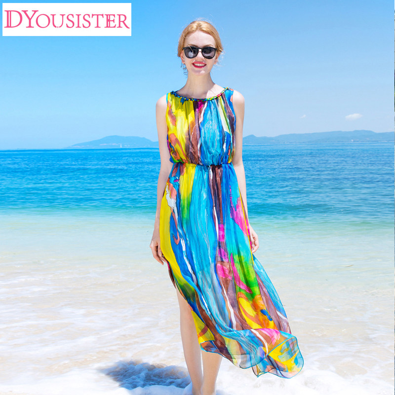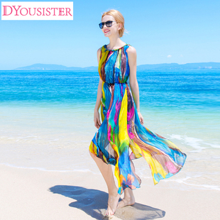 dyousister波西米亚真丝沙滩裙女夏新款 海边度假显瘦连衣裙