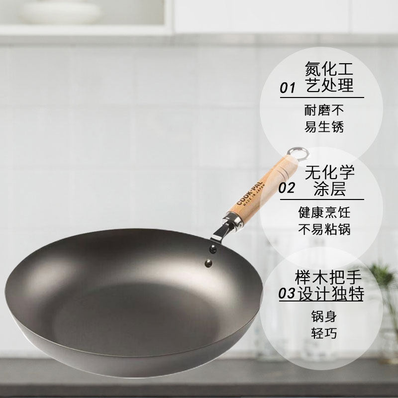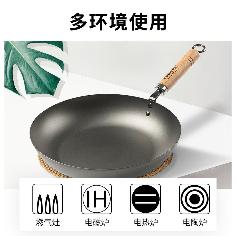 钛无涂层平底锅不粘锅家用牛排电磁炉煤气灶专用炒菜锅不沾深煎锅