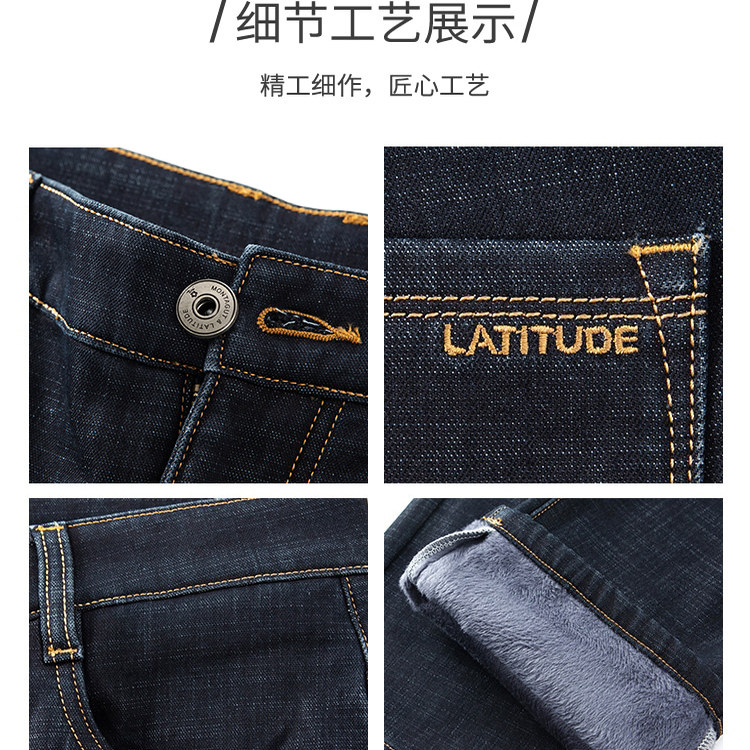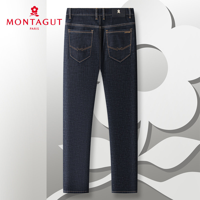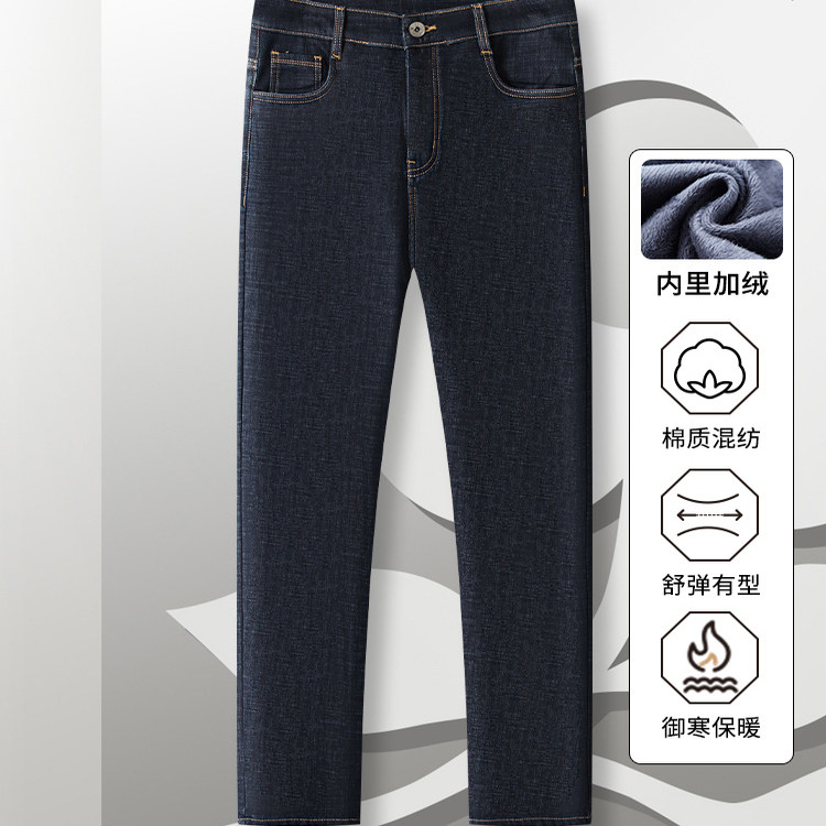 梦特娇冬季 保暖抗皱 男士 牛仔裤 耐磨J 棉弹休闲直筒长裤 加绒加厚