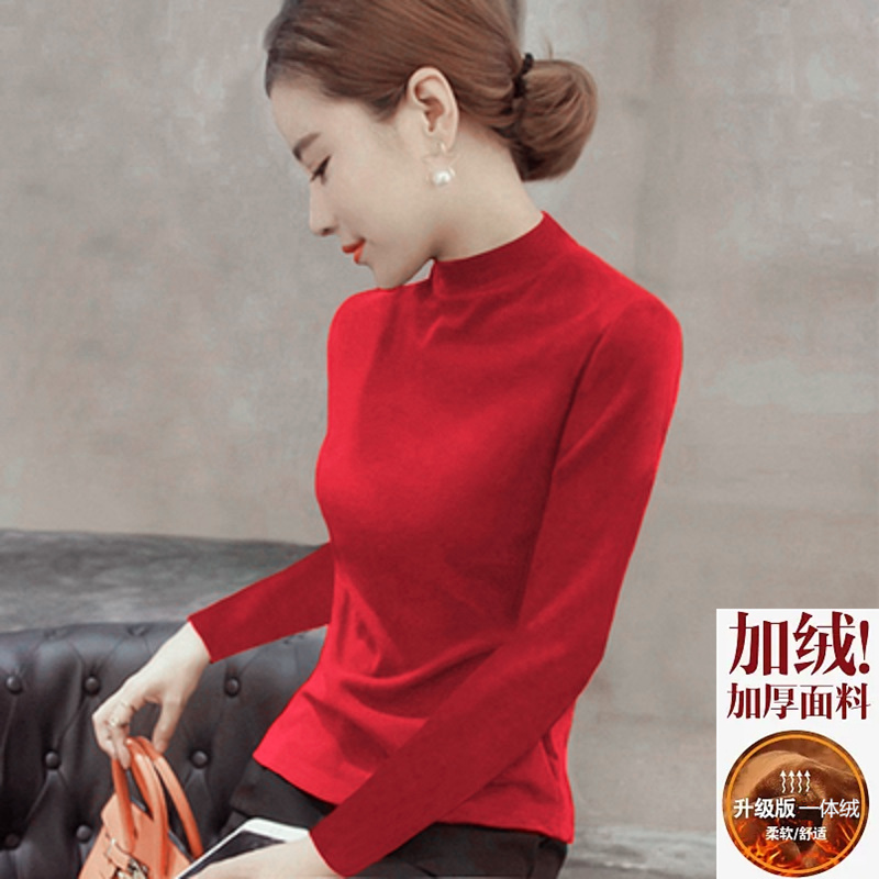 针织春装 女秋冬一体绒内搭毛衣加绒长袖 加厚上衣 半高领打底衫 大码