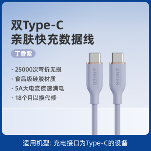 Anker安克硅胶亲肤5A安卓数据线100W双type C笔记本手机PD快充线