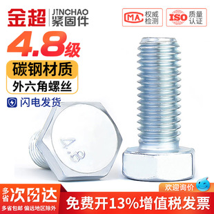 金超4.8级镀锌外六角螺丝螺栓加长螺杆螺钉M6M8M10M12M14M16M18