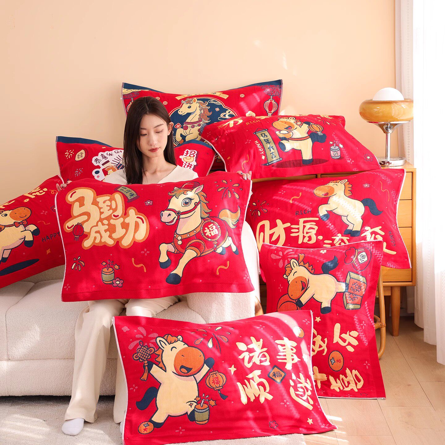 八层纯棉纱布枕巾一对装 情侣喜庆枕头巾加大加厚全棉家用单人盖巾