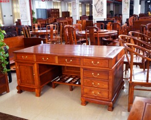 缅甸花梨红木办公桌大果紫檀班台电脑桌会议桌实木原木古典家具