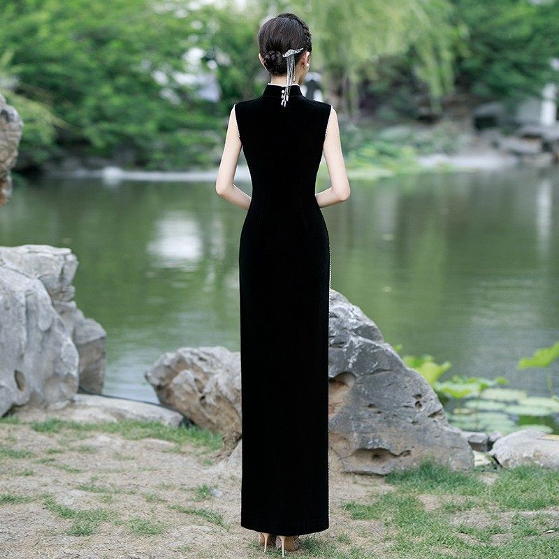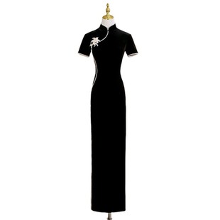 黑色冬季 高端奢华国风旗袍显瘦气质长裙 加绒加厚连衣裙2025年新款