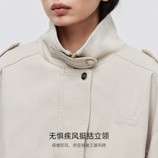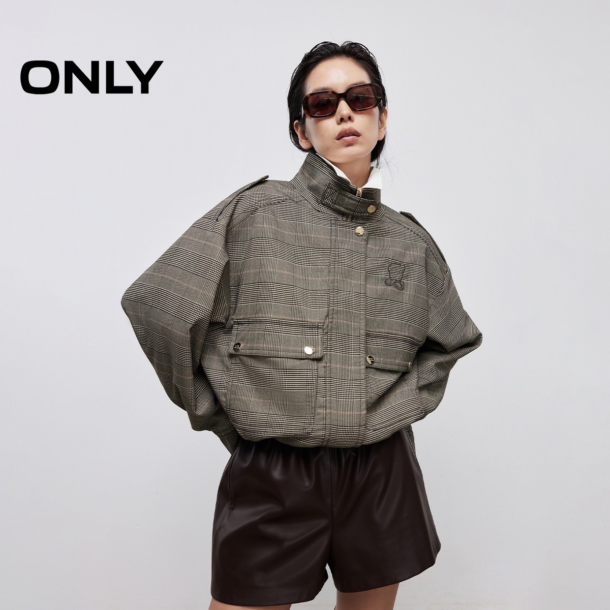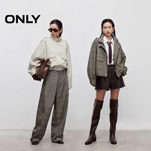 ONLY春季 风大口袋抽绳下摆宽松落肩立领外套女 飒爽工装