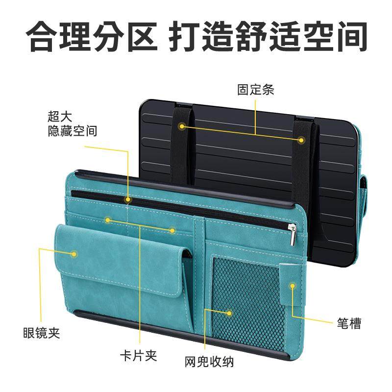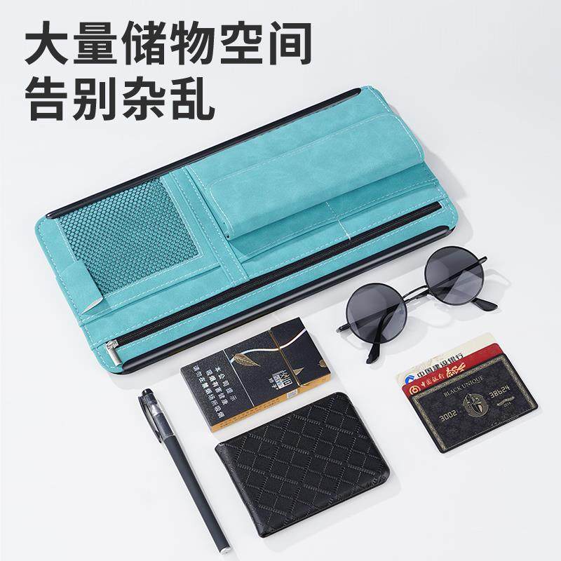 汽车遮阳板收纳多功能车载车内眼镜夹架卡片收纳袋卡包票据证件夹