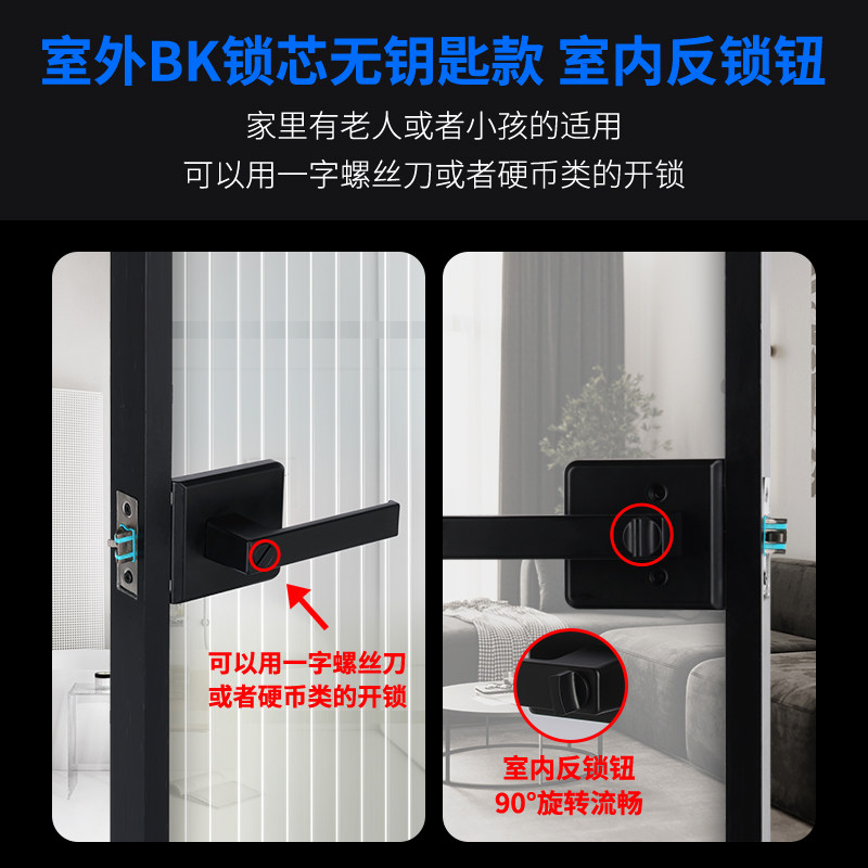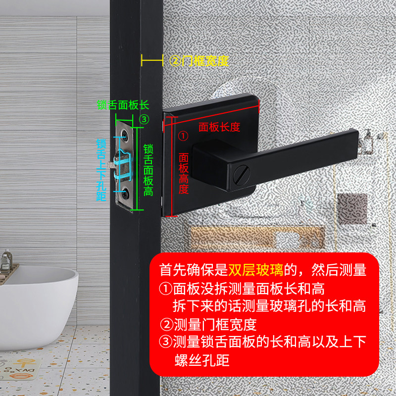 卫生间门锁通用型铝合金静音门把手长虹玻璃门锁极窄卫浴厕所浴室