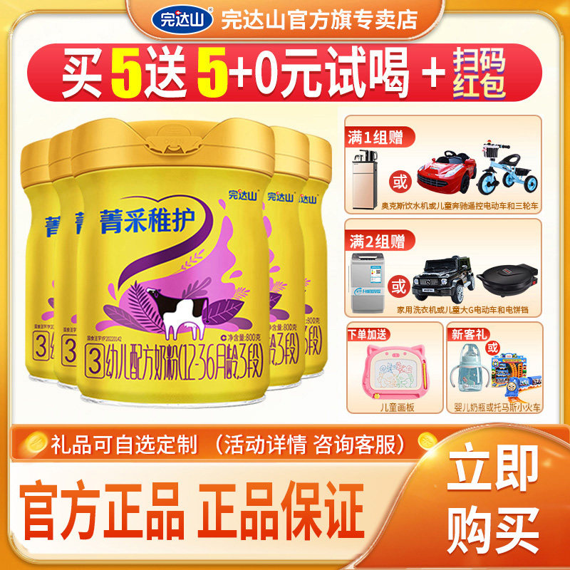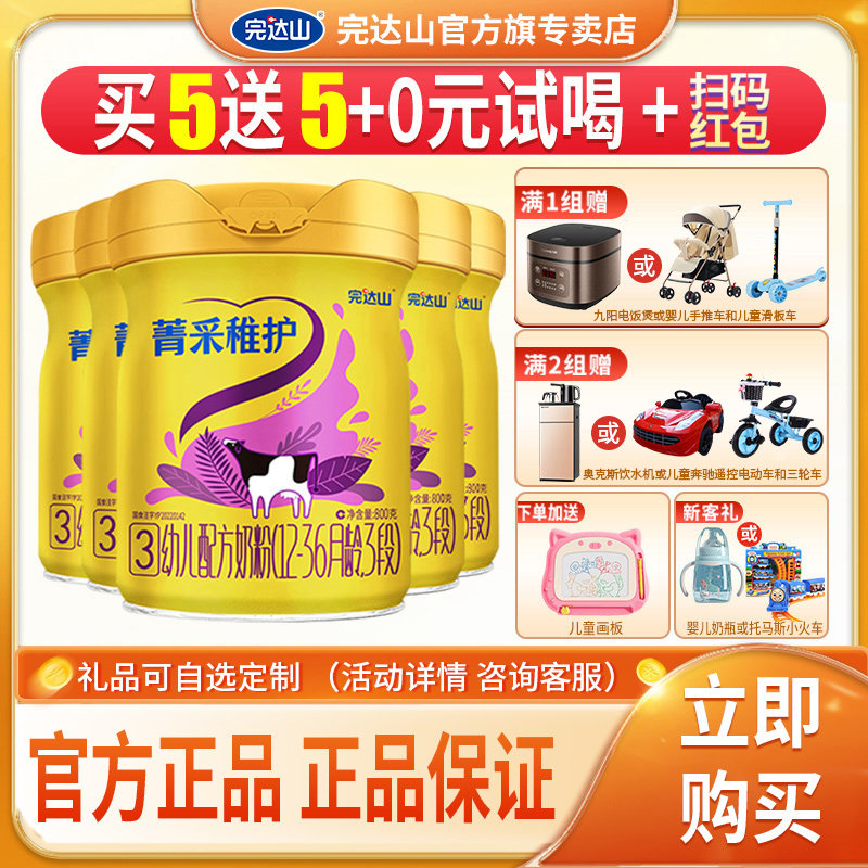 3岁幼儿适用 完达山菁采稚护 1岁 5罐 幼儿配方奶粉3段800克