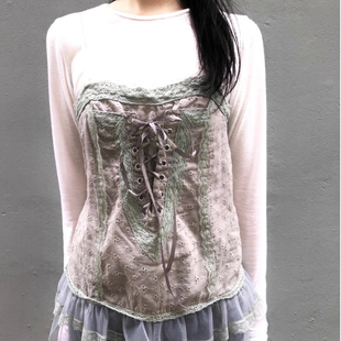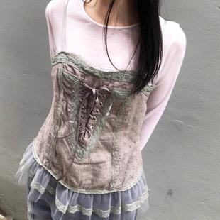 缎面蕾丝拼接吊带背心女2025春夏新款 叠穿设计感小众内搭打底上衣