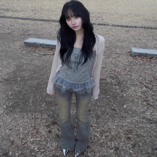 内搭打底辣妹风无袖 2025新款 上衣 黑色蕾丝花边吊带背心女夏季 美式
