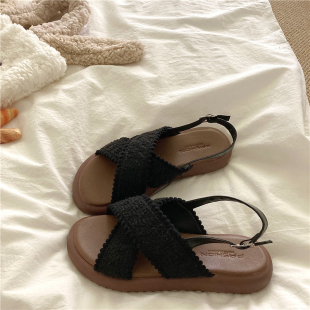 复古平底凉拖鞋 女ins夏季 潮 慵懒仙女风沙滩凉鞋 波西米亚海岛风
