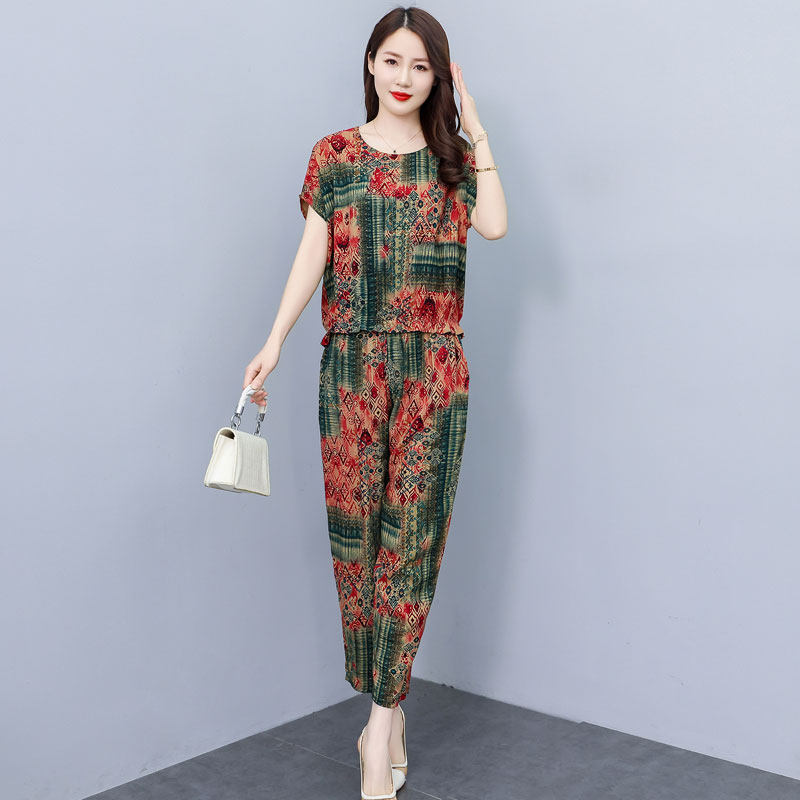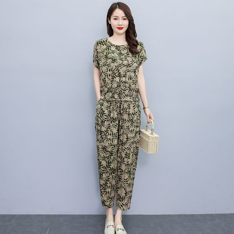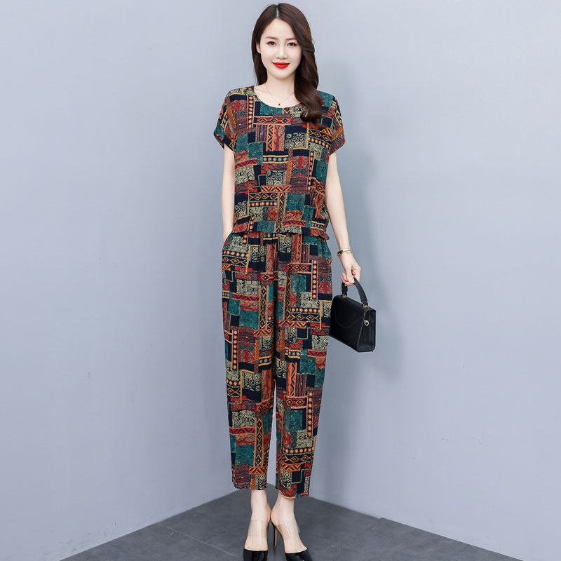 套装 薄款 女中老年妈妈九分裤 宽松大码 棉绸两件套 2026新款 短袖 夏季