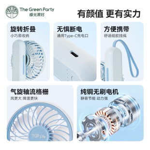 TheGreenParty手持迷你风扇小型usb三挡户外桌面可折叠便携小风扇