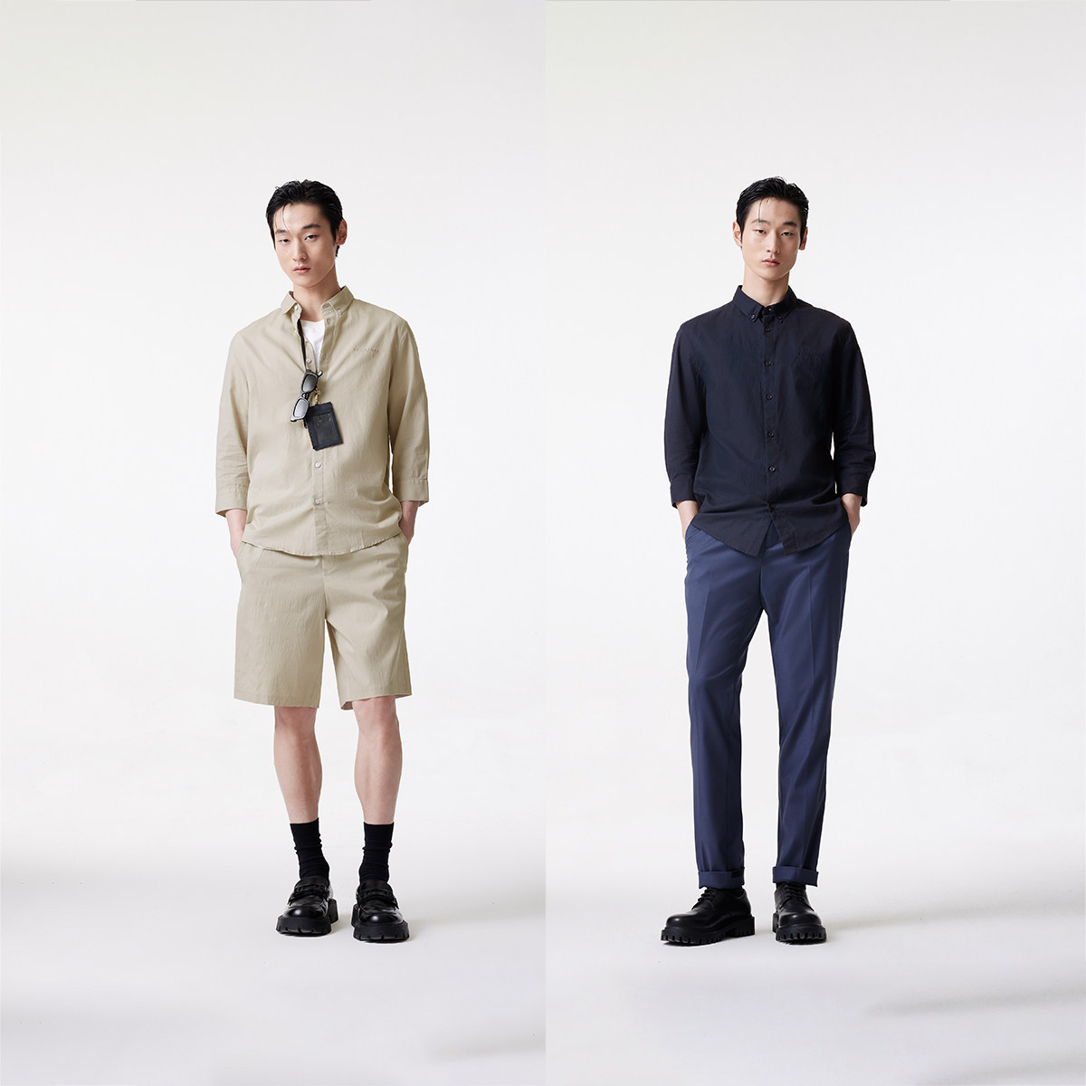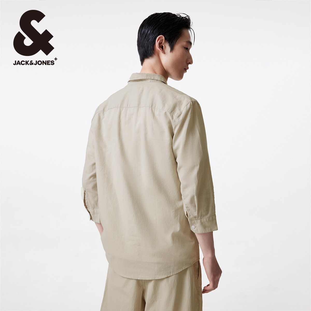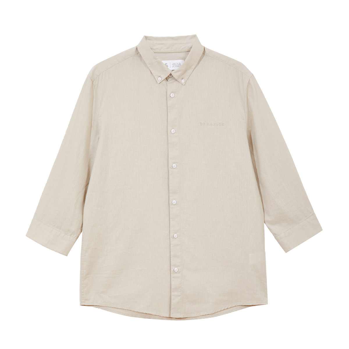 衬衫 tq区绫致杰克琼斯春夏男衬衫 翻领百搭纽扣刺绣上衣棉麻七分袖