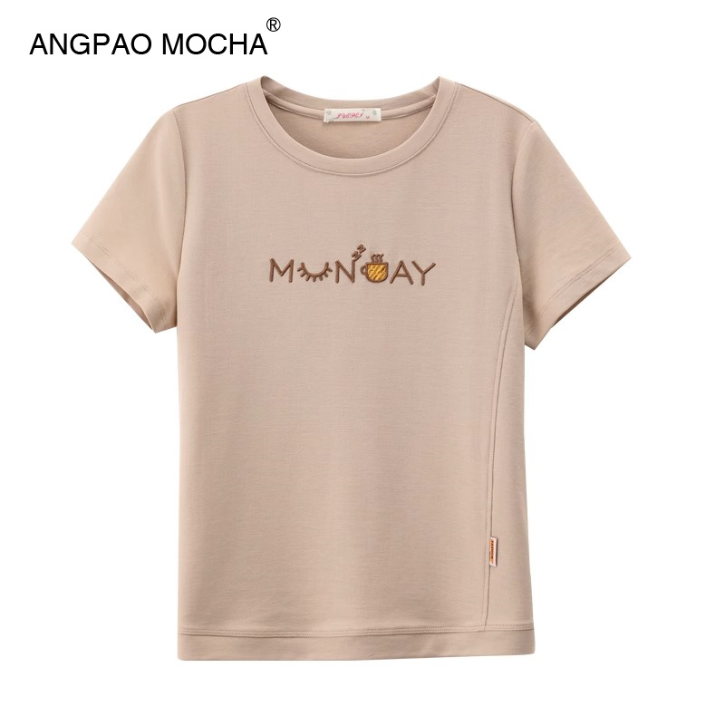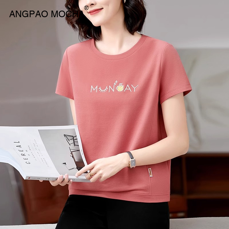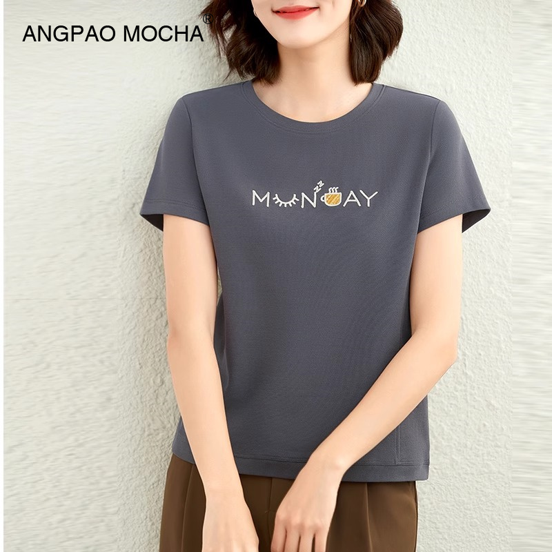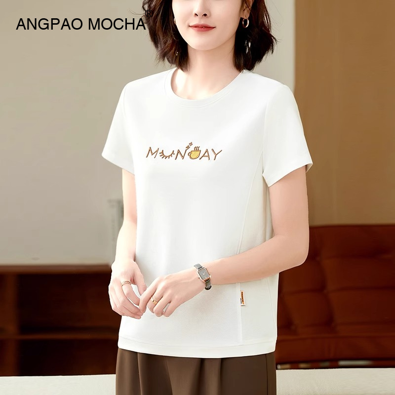 刺绣中年妈妈上衣服气质减龄休闲小衫 时尚 2024新款 圆领t恤女夏装