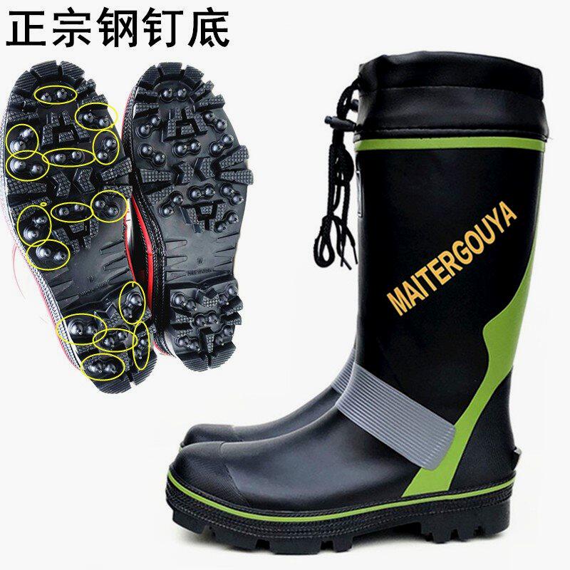 工地钓鱼洗车水靴 牛筋底耐磨中筒雨靴加绒劳保胶鞋 雨鞋 男高筒水鞋