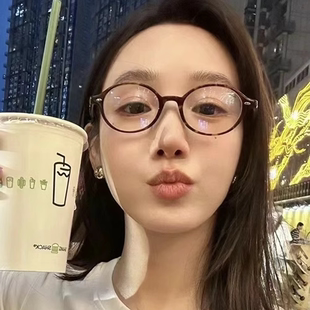 仪dowdy同款 可配近视玳瑁防蓝光 超轻豹纹椭圆素颜书呆子眼镜女款