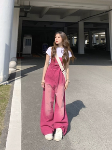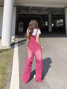 直筒显瘦拖地阔腿宽松连体裤 大码 女春夏新款 牛仔背带裤 胖妹妹工装