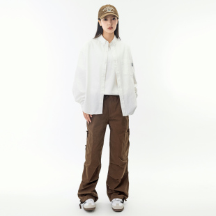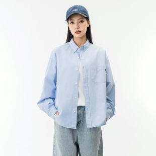 女 MANNSTU 日系宽松简约胸口包小标衬衫 新款 休闲纯色衬衣男 春季