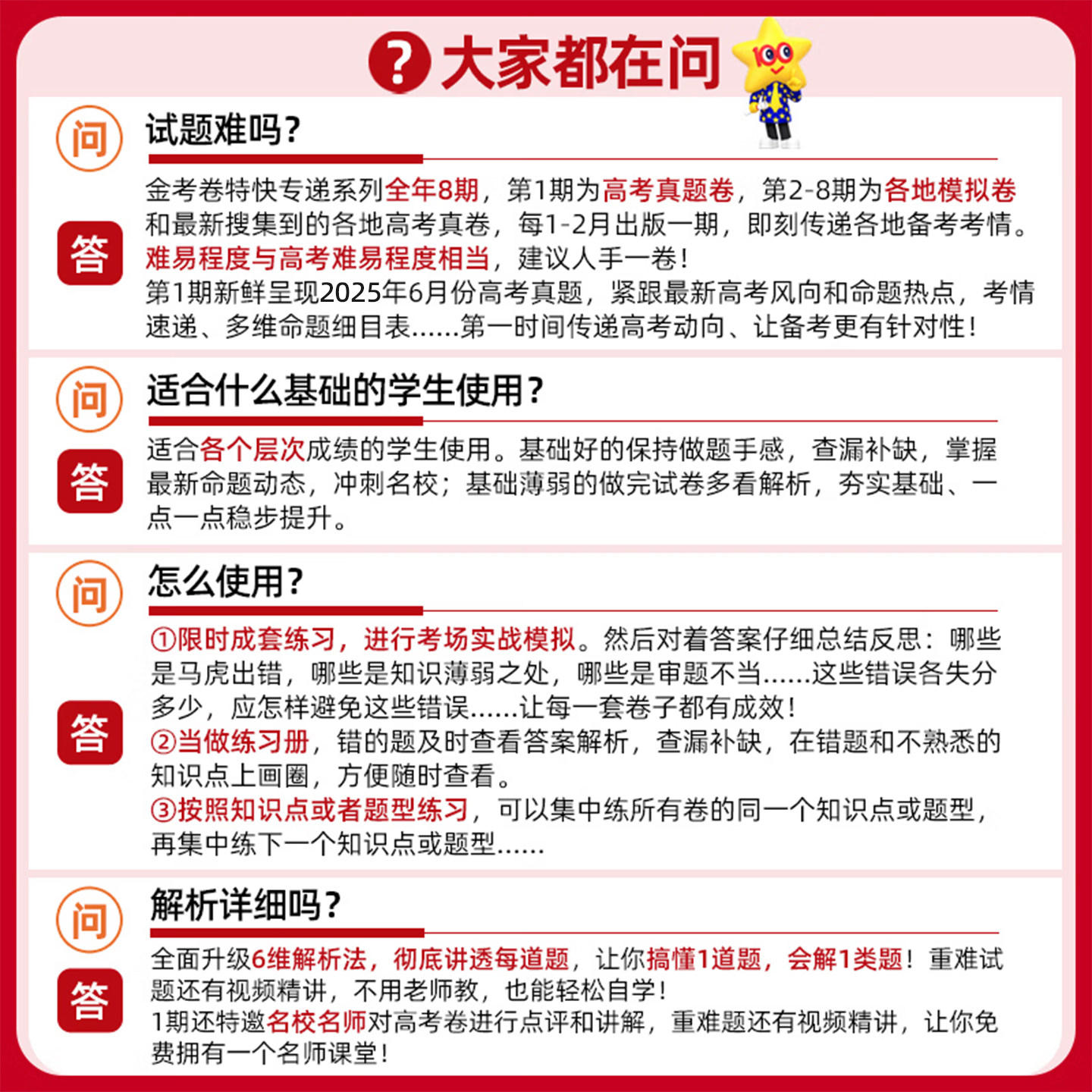 2026版 金考卷特快专递数学语文英语物理化学生物政治历史地理新高考2025高考真题卷必刷题摸底监测卷九省模拟试卷试题汇编天星教育