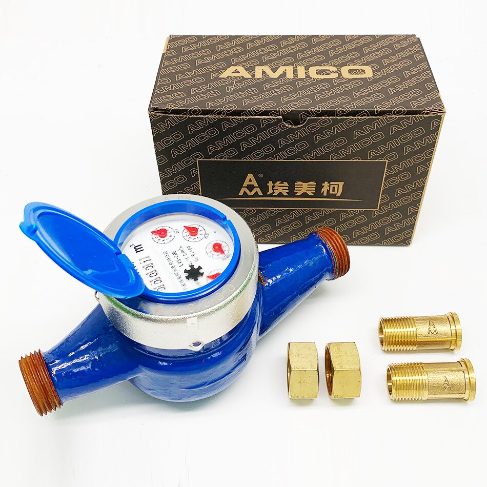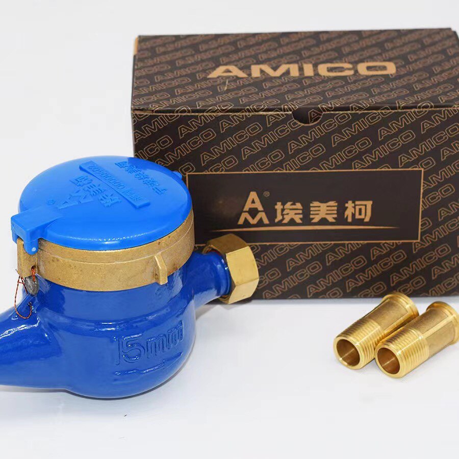 埃美柯水表旋翼式 螺纹机械家用自来水液封铜盖铜接冷水表 国标湿式