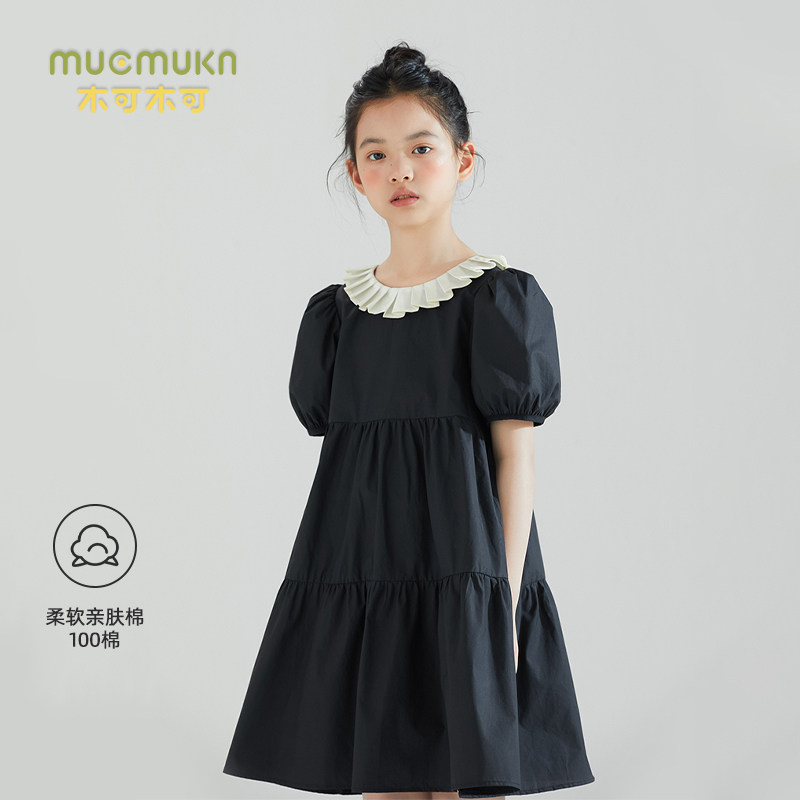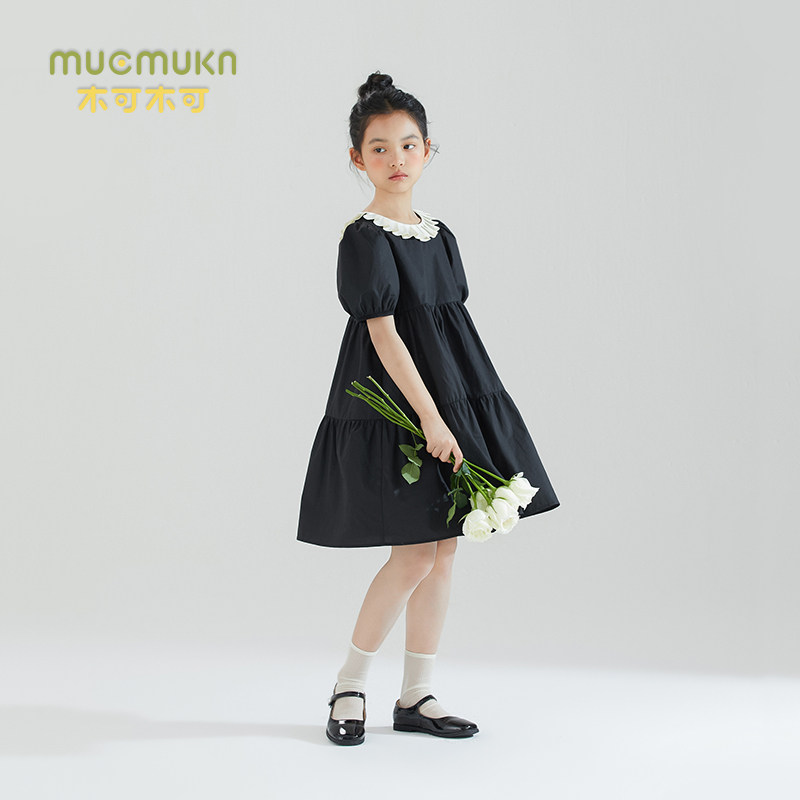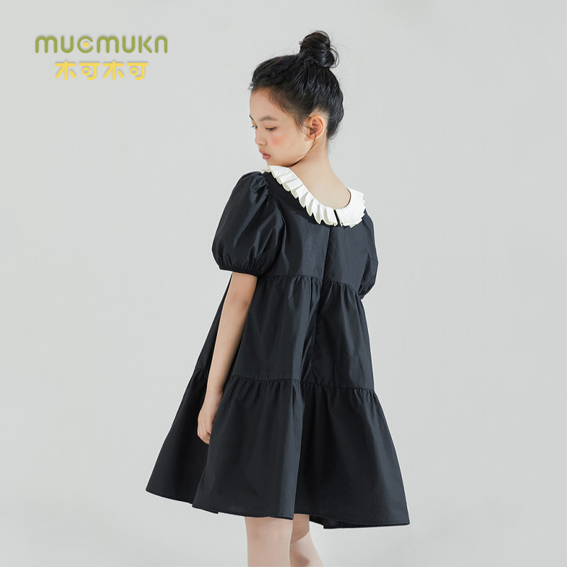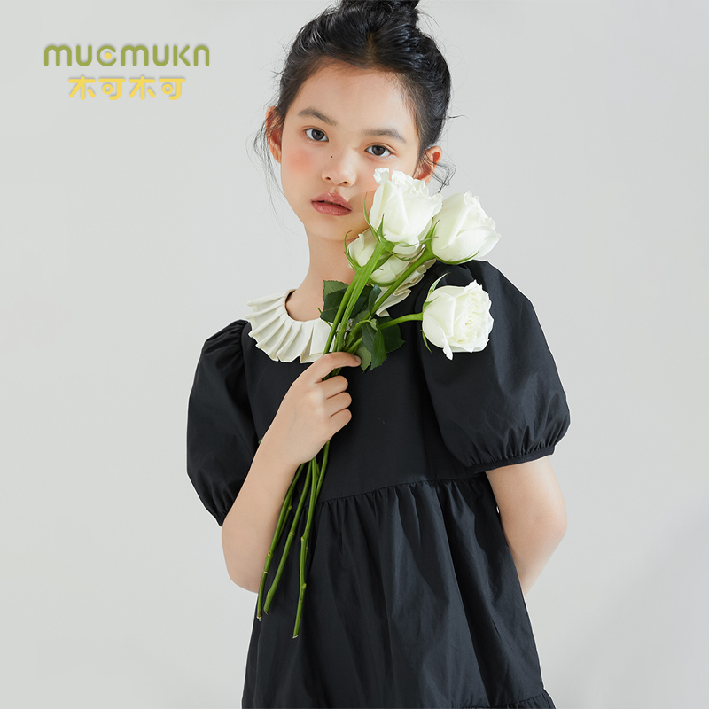 女童黑色泡泡袖 中大儿童裙子 公主裙夏甜美可爱仙女连衣裙法式