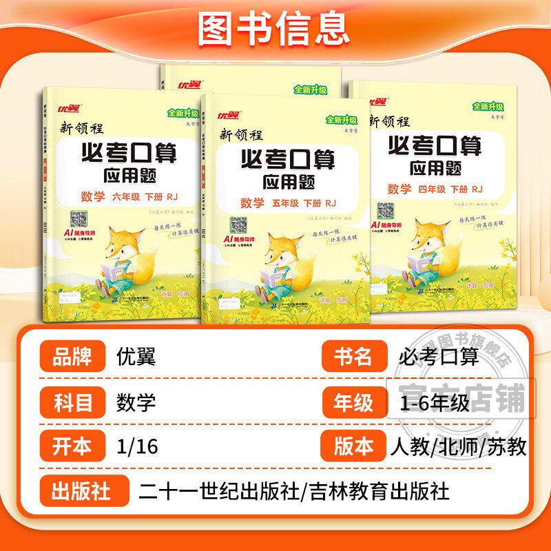 2026春2025优翼新领程必考口算系列小学必一年级二年级三年级四年级五年级六年级上下册人教版 考应用题计算口算天天练 北师大苏教版